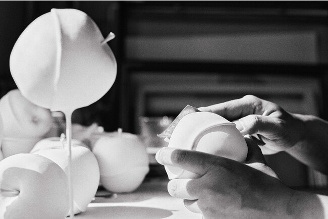 型破りな発想から様々な感情のバランスをリンゴの形を通して表現されたアートピース