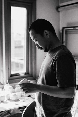 1989年多摩美術大学彫刻科石彫教室卒業卒業後、彫刻家として活動した後、2002年に茅ヶ崎に築窯、石彫から陶芸に転身。食器やモニュメント、アートワーク等様々な製作に携わり、作家独自の感性で作陶された作品は作家の唯一無二の世界観で人々を魅了する。陶芸の概念にとらわれない、「形作ること」や「造形」への探求心が、工芸を超えた表現としての陶芸を実現。