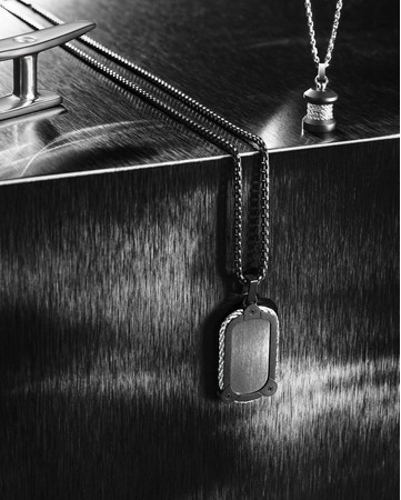 ゴールドとスチール、ブラックチタンとスチールが裏表に配置されたIDタグのペンダントは、刻印でパーソナライズも可能です。さらにケーブルでオープンタグを囲んだ軽やかなペンダント、そして小さなまさにウインチデザインのモチーフが、航海の雰囲気をさらに盛り上げ、IDタグペンダントと組み合わせてさまざまなコーディネートがお楽しみいただけます。