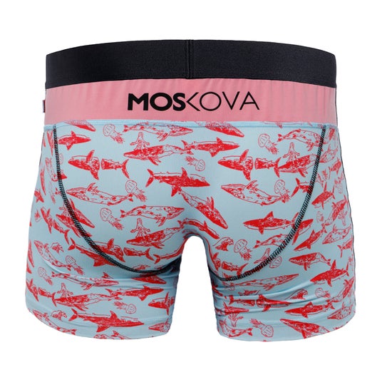 個展を開催すれば多くの人を集め、抽選販売でしか購入できないような人気画家・ペインターの田中健太郎氏が<モスコヴァ>をイメージしたオリジナルで描いたデジタル作品は、今までの<モスコヴァ>にはないボクサーパンツのデザインとなっています。