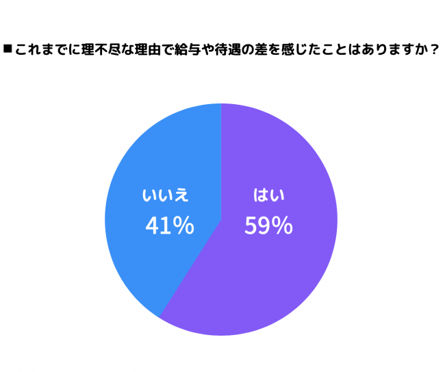 ■59%の方が「これまでに理不尽な理由で給与や待遇の差を感じた事がある」と回答。
