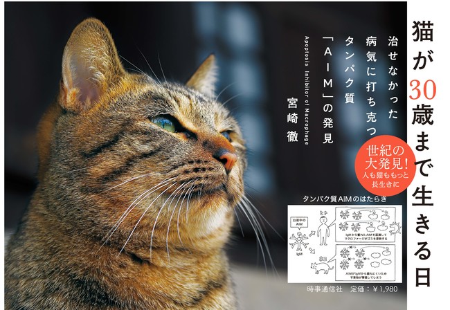 2021年8月に出版した書籍『猫が30歳まで生きる日』(宮崎 徹・著)は、これまで治療不可能といわれていた猫の腎臓病について、タンパク質「AIM(Apoptosis Inhibitor of Macrophage)」による治療の可能性を示し、大きな話題となりました。
