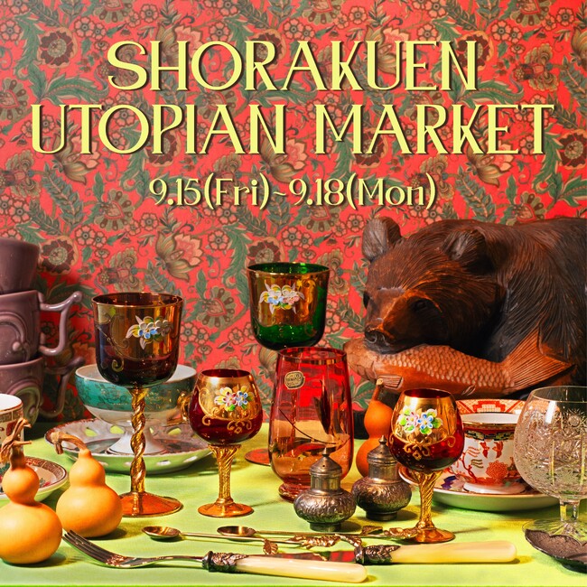 同時に店内では小楽園が買い付けた世界各国のヴィンテージの食器や、金襴などが入った布のはぎれセットなど、小楽園に"漂流してきた"かのような様々なアイテムが並ぶ「ユートピアンマーケット 小楽園の漂流物市」を開催。15日(金)の18時~はカクテルをお飲みいただきながらお買い物ができる、ナイトマーケットも行われます。