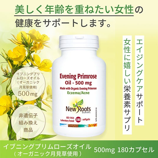 - イブニングプリムローズオイル(オーガニック月見草使用) 500mg 180カプセル