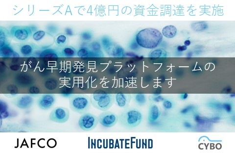 株式会社CYBO(本社:東京都江東区青海2-4-10産業技術研究センター製品開発支援ラボ301、代表取締役:新田尚、以下「当社」)は、ジャフコおよびインキュベイトファンドを引受先とした第三者割当増資(シリーズA)で4億円の資金を調達しました。この資金を活用して細胞解析技術に基づくAI医療機器の製品開発および事業化を進め、疾患の早期発見による健康で安心な社会の実現に貢献することを目指します。