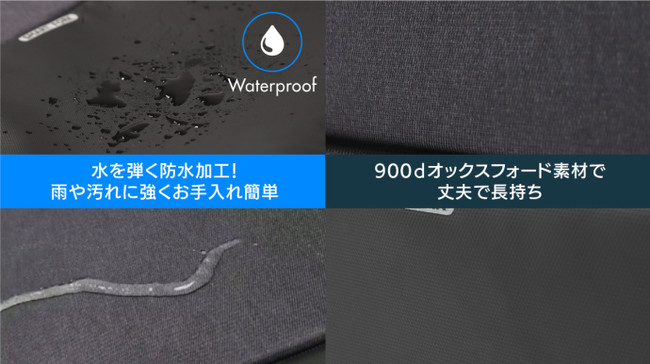 テントなどにも採用される耐久性がある丈夫な生地、900dオックスフォード素材採用。高級感があります。