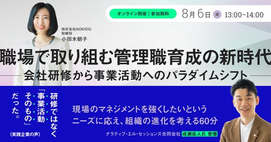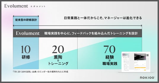 人材育成・組織開発事業を展開する株式会社NOKIOO(所在地:静岡県浜松市、代表取締役:小川健三)は、チームワーキングの変革を通じて、組織と個人の持続的な発展を支援します。その一環として、進化マネージャーを育てる新たなプログラム「Evolument<エボルメント>」をリリースします。