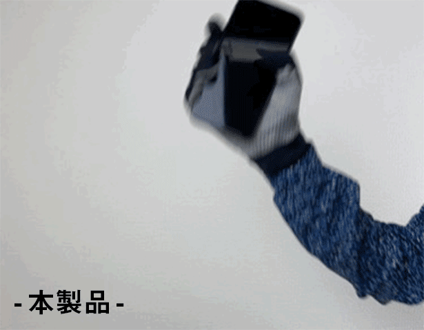 “滑りやすい”という点に対し、「SSG」は手の平全面にグリップ性の強いシリコンプリントを採用しました。強いグリップ力が求められるゴルフや野球のバッティンググローブにも使用されているものと同様の素材を使用することで、大切なスマホやガジェットが滑り落ちないように設計しています。
