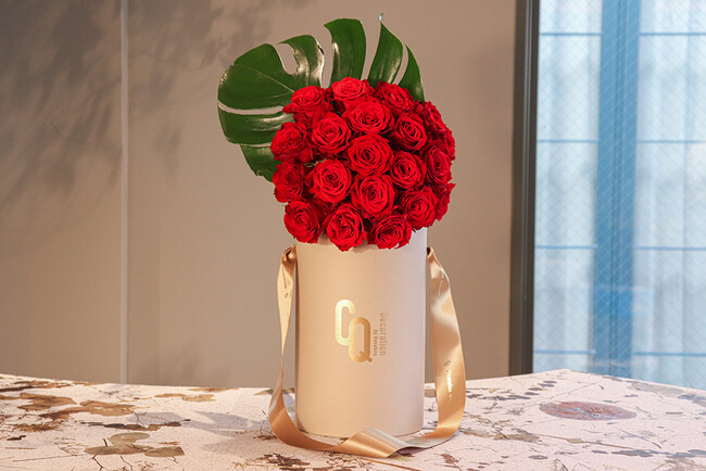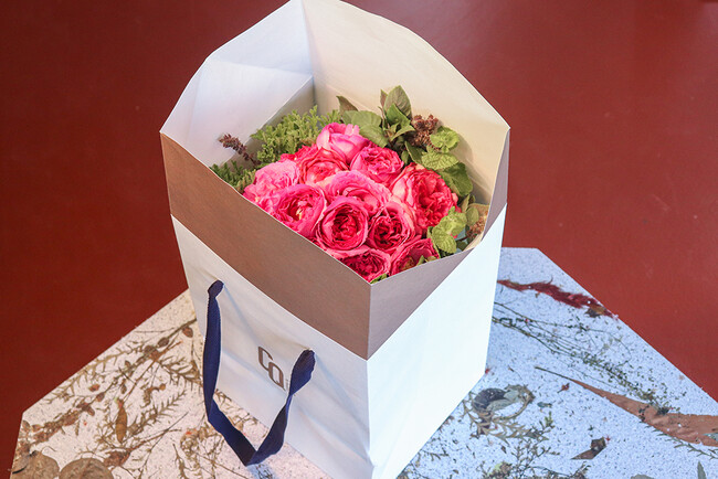 お花を持ち歩くことに恥ずかしさのある男性が多い中、ボックスのようなパッケージの中にお花を入れあえて隠してしまうことで恥ずかしさを払拭すると共に、ギフトをもらう側も開けるまで何が入っているかわからないワクワク感やサプライズを演出します。