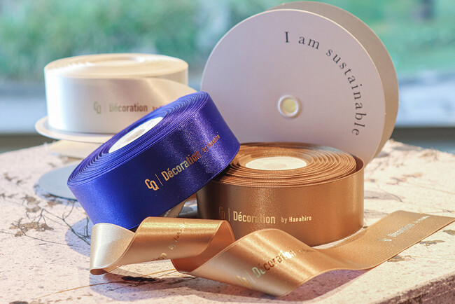 廃棄花材と廃棄衣料繊維をアップサイクルしたサスティナブルな環境配慮型素材(繊維リサイクルボード「PANECO(R)(パネコ )」)を活用し、店内の什器やフラワーベースを企画、製作、販売いたします。また、ウェディングやパーティ撮影などの短い期間で役目を終えた廃棄予定の花々を毎週月曜日にアップサイクル。「reBorn bouquet(リボンブーケ)」として販売いたします。店舗で販売するオーダーブーケのリボンは、ペットボトルから100% 再生されたサスティナブルリボンを使用いたしております。
