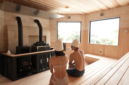 地産地消の薪を熱源にしたオリジナル薪ストーブから伝わる熱とロウリュの蒸発音で心を落ち着かせ、五感が研ぎ澄まされたサウナ室で眺める炎のゆらめきは格別。水着着用で男女一緒に楽しめる。