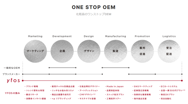 プルソワンは、多数企業の美容商品のOEMを手がけ成功へと導いてきました。物流、デザイン、ECサイト構築など、生産だけに留まらず一気通貫して成功するOEMプラットフォーム「yfos」にて数々の案件を手がける中で、唯一欠けているピースとして、インサイト発掘、ブランド・マーケティング戦略の立案がありました。