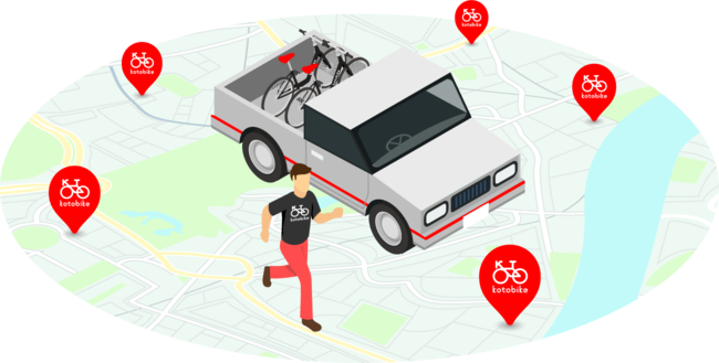 2019年にリリースしたkotobikeは、京都市内に約50箇所のポートを構える、国内唯一の自転車小売店がサービス設計・提供しているシェアサイクルサービスです。
