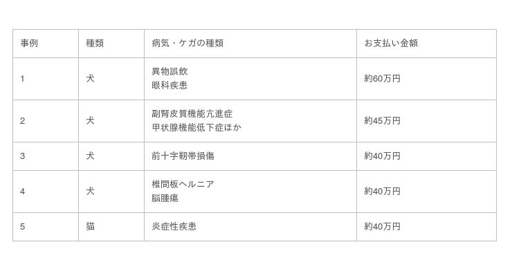 ※上記の数値は、PS保険加入者さまからご請求されたものであり、ペットメディカルサポートが補償する範囲を示すものではありません。また、平均や水準を示すものでもありません。