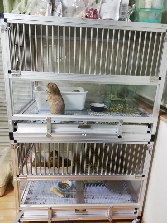多頭飼では喧嘩しやすいというプレーリードッグの習性から、それぞれの生活スペースを分けてほしいというご要望で作成した事例です。ケージを分けることで、喧嘩することなく快適にすごせる環境になりました。