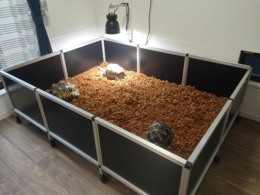 事例1. 3匹のリクガメのための巨大ケージ。通常の木材では劣化が激しいためアルミ製に