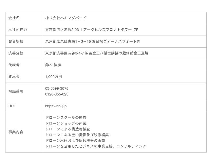株式会社ハミングバード(ドローンスクールお台場・渋谷)