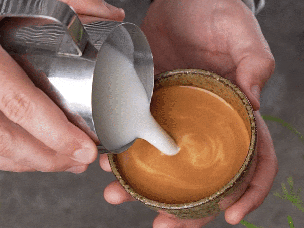 あとはカップにつやつやのマイクロフォームミルクを注ぐだけ!美しいラテアートを描き、多くの人を幸せをお裾分けしましょう。