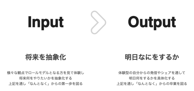 U18キャリアサミットではイベント内でなんとなくから卒業するためにInputとOutputを中心にコンテンツを組んでいます。