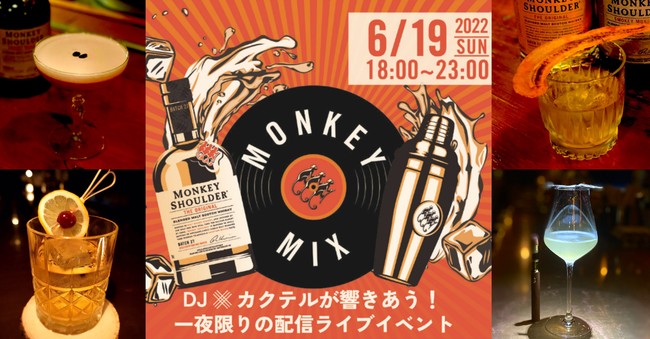 『100% MALT WHISKY MADE FOR MIXING』がコンセプトのモンキーショルダー(製造:スコットランド産、ウィリアム・グラント&サンズ社(本社英国) / 販売元 三陽物産株式会社(本社大阪))は、6月19日(日)18時から東京・渋谷のTHE MUSIC BAR -CAVE SHIBUYA-にて、DJの音楽とトップバーテンダーのカクテルが響き合うライブイベント『MONKEY MIX』イベントを開催します。同時に現地に足が運べない方にもお楽しみいただけるようライブ配信もします。