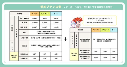 行事中のケガだけでなく、会場への往復途上でのケガ、熱中症や食中毒なども補償の対象となります。さらに、行事中のケガに備える傷害保険に加え、賠償責任保険を付帯できる点が特徴です。
