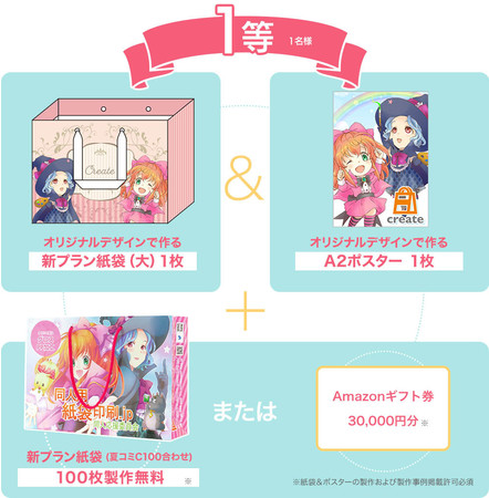 さらに1等では、夏コミC100合わせで作れる新プラン紙袋100枚の製作が完全無料!
