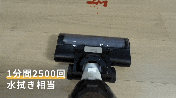 さらに、1分間2,500回水拭き相当の高速回転ブラシローラーで、ごみ吸引後のベタベタ汚れもきれいに拭き取ることができます。