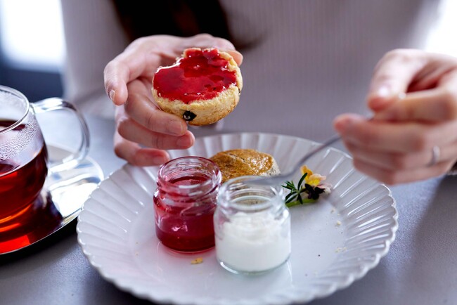 お好きなドリンクとスコーン、ジャム、クロテッドクリームのセット。