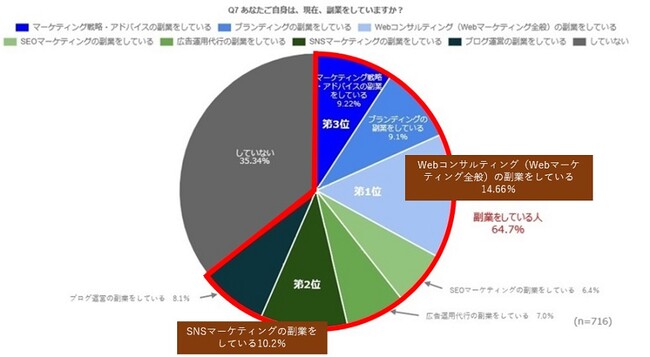 また、現在副業をしているかを聞いたところ、「していない」(35.3%)に対し、何らかの副業をしている人が64.7%と全体の6割で、副業が一般化してきたことが推測されます。