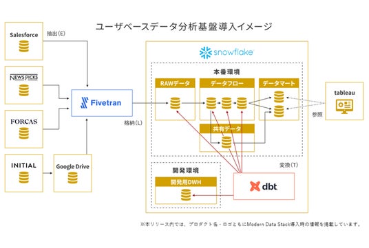 データモデリングとアーキテクチャー設計の株式会社メソドロジック(本社:東京都新宿区、代表取締役社長:白石 章、以下「メソドロジック」)と、クラウドを中心とした技術支援を提供するクラスメソッド株式会社(本社:東京都港区、代表取締役社長:横田 聡、以下「クラスメソッド」)は、2社で協業し、株式会社ユーザベースにSnowflake、Fivetran、dbt Cloudでのモダンデータスタック導入を支援しました。