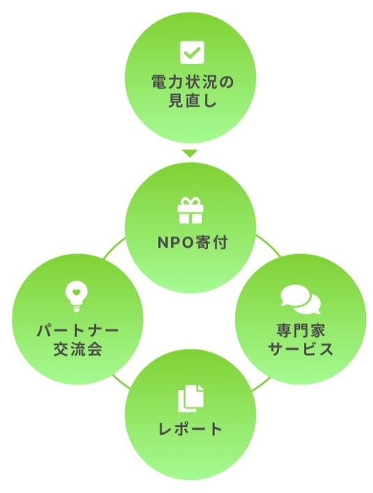 電気使用量1kWhあたり0.05円をNPO団体へ寄付。