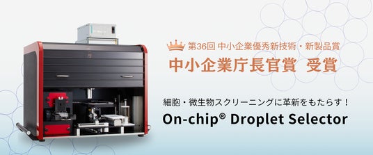 (株)オンチップ・バイオテクノロジーズの主力製品「On-chip(R) Droplet Selector」が中小企業庁長官賞を受賞致しましたので、お知らせいたします。中小企業庁長官賞 微生物スクリーニングシステム「On-chip Droplet Selector」大量の微生物を解析、分離して個別に分注できるシステム「On-chip Droplet Selector」を開発、2022年に同装置を市場投入した。従来、多くの時間と人手を費やし行っていた微生物スクリーニングだが、同システムを用いれば自動で短時間に100万個の微生物サンプルの処理が可能になった。同社の試算によると従来技術のマイクロウェルプレート法に比べ、処理能力は1000倍になるという。同装置の普及が進めば人の健康に加え、地球環境の変動対策などに有用な微生物探索が飛躍的に進む可能性がある。同社は18年から開発をスタート、現在は研究機関・大学、企業などに約20台を納入した。