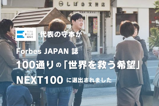 「ケアするまちをデザインする」をビジョンに、街に暮らすことで健康になる社会を目指す 一般社団法人ケアと暮らしの編集社(所在地:兵庫県豊岡市、以下「ケアと暮らしの編集社」)の代表理事である守本陽一が、2024年4月25日発売のForbes JAPAN6月号の特集にて『100通りの「世界を救う希望」NEXT100』に選出されました。