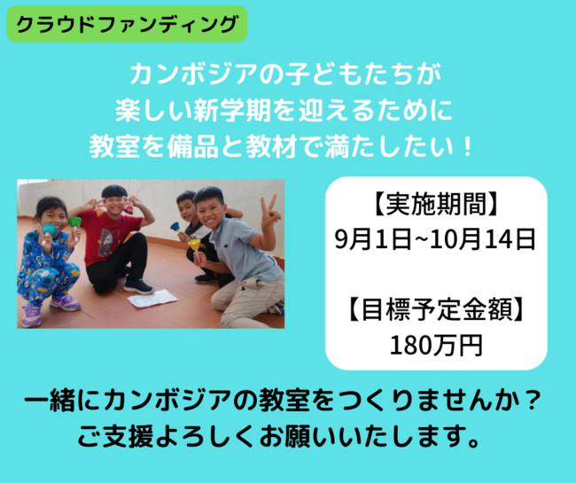 「カンボジアの子どもたちが楽しい新学期を迎えるために、教室を備品や教材で満たしたい」