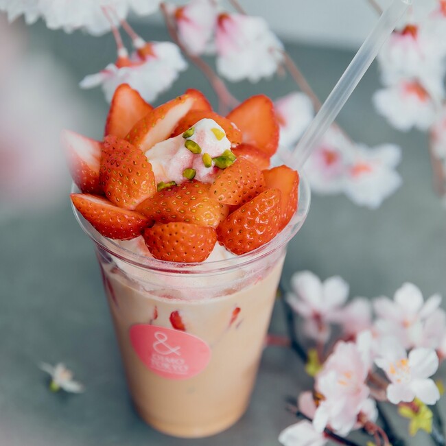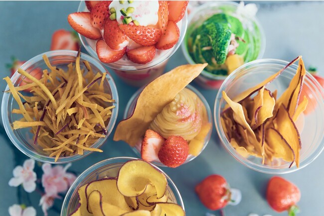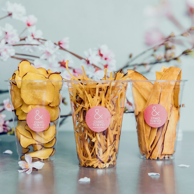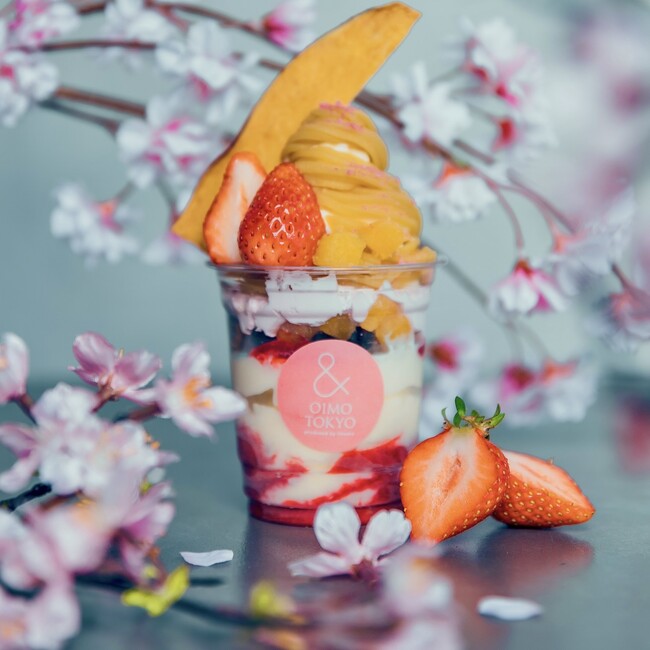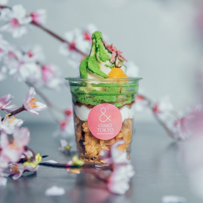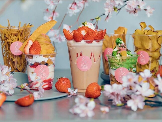 熟成蜜芋スイーツ専門店《& OIMO TOKYO(アンド オイモ トウキョウ)》の旗艦店『& OIMO TOKYO CAFE 中目黒』から、お花見シーズン限定商品を販売いたします。厳選したさつまいもを使用し、一度食べ始めたら止まらない味付けのチップスをはじめ、桜や苺をあしらった見た目も可愛らしいパフェなどをご用意。春にぴったりの華やかなメニューを、持ち運びしやすいカップに入れて取り揃えております。目黒川の桜とともに是非ご堪能ください。