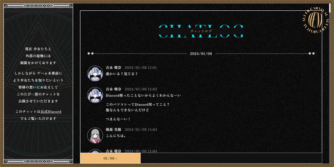 なお、チャット自体は公式Discordで行われていますが、その内容が公式サイトでも随時公開されるようになっております。