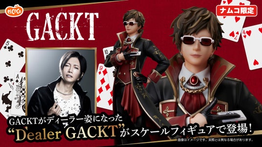来年のソロデビュー25周年に合わせ、豪華な服をまといディーラー姿となった、その名も“Dealer GACKT”。細かい服のシワや、高級感あふれる彩色など、細部まで精巧に造られた1/8サイズのスケールフィギュアがアミューズメント専用景品になって登場します。