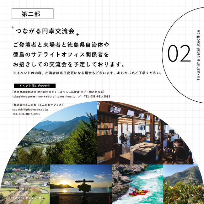 株式会社えんがわは徳島県の「地域×サテライトオフィス企業マッチングイベント」運営業務を受託し、「徳島サテライトオフィス10周年記念イベント in 東京」を2022年1月19日(水) にイベントスペースEBiS303 にて開催いたします。(公式HP: https://tokushima-satelliteoffice.com/)