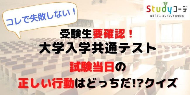 ”生徒を放置しない”オンライン個別指導塾Studyコーデ( https://studycoorde.com/ )が、これから受験本番を迎える大学受験生のために、知っておいてほしい心構えをクイズにして公開しました!