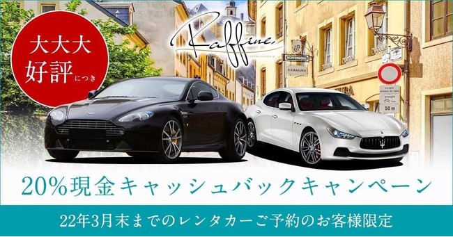 株式会社米自動車(本社:東京都港区、代表取締役:米 武士、以下:YONEMOTORS 「ヨネモータース」)が運営する高級車レンタルサービス「ラフィーネレンタカー」は、オミクロン株の感染拡大により、政府の観光支援策「GoTトラベル」事業再開の見通しが立っていないことから、2022年1月19日(水)より独自のGoToキャンペーンを実施します。2022年3月末までにご予約いただいたお客様を対象に現金を20%キャッシュバックします。