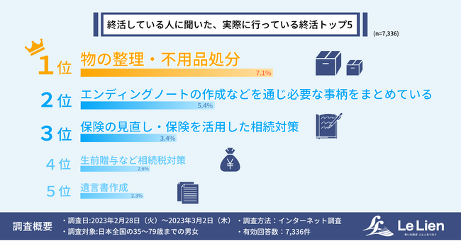 株式会社ルリアン(京都府京都市、代表取締役社長・藤巻米隆)は、2023年2月、35歳から79歳を対象に相続に関する実態調査を行い、7,336人から回答を得ました。第1弾では調査の概要、第2弾では「空き家や生前対策の実態」の分析結果をお届けしました。第3弾である今回は「親の終活・子の終活」をテーマに分析結果をお届けします。