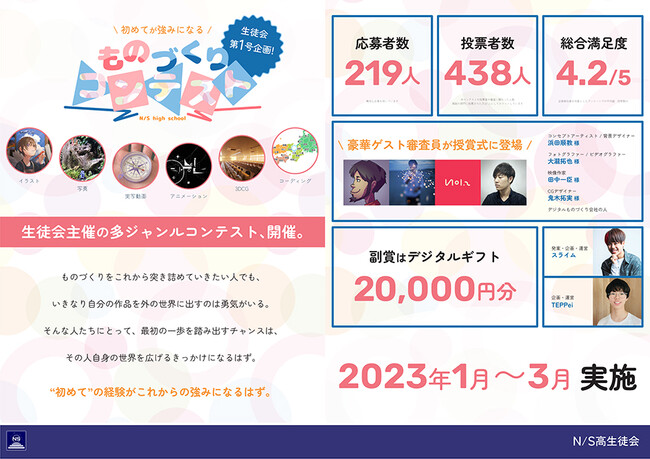 ☑︎ 発足以降、「N/S高生vsひろゆき氏 ディベート対決」「ものづくりコンテスト」など生徒主体の大型企画を実現