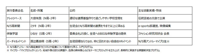 ※1 ナレッジベース(学園内ヘルプセンター)実行委員、N/S高新聞実行委員、体験学習実行委員、バーチャルイベント実行委員