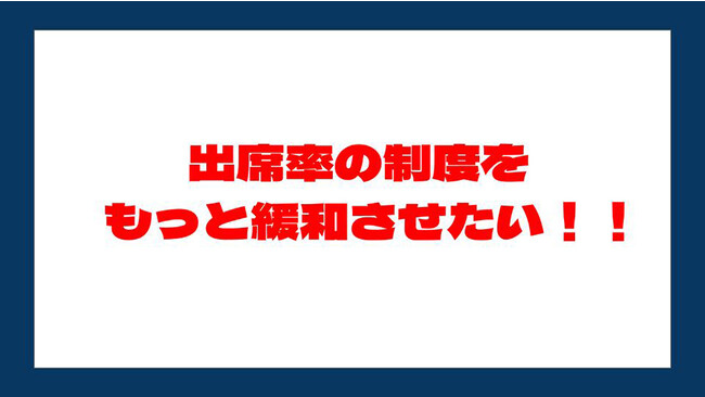 私は「挑戦できる環境づくり」を公約として生徒会選挙活動を行ってきました。その公約の達成だけでなく、この学園がより良くなるために何が必要か第2期生徒会の役員とともに日々議論し、その意見を生かしていきたいと思います。応援よろしくお願いいたします。