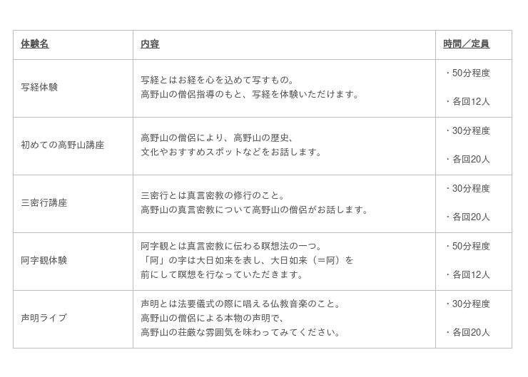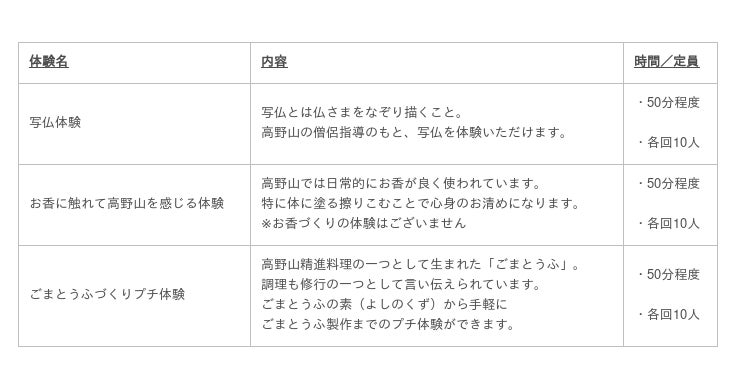 ~高野山の僧侶による特別な仏教体験など、“高野山ならでは”の魅力がたっぷり味わえます~