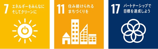 今回ご案内の取り組みは、昭文社グループの「カーボンニュートラル・脱炭素社会」の実現と「安心・安全で快適な暮らし」の実現への活動の一環となります。また、SDGsの17のゴールのうち、特に7番、11番、17番に貢献するものと考えています。
