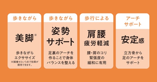 2.歩きながら姿勢をサポート。足裏のアーチを作ることで身体のバランスを整えます。