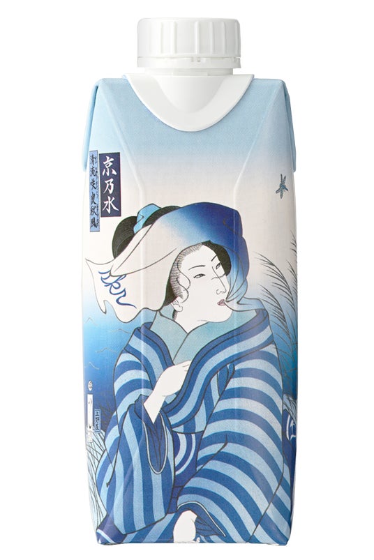 新商品「ミネラルウォーター 清流咲良秋風」は、1200年にわたり京都文化を支えてきた地下の名水を無菌充填したミネラルウォーターです。環境に優しい紙容器を採用し、新たな浮世絵表現の画家・絵師として活躍する石川真澄氏とのコラボレーションデザイン第三弾となっております。