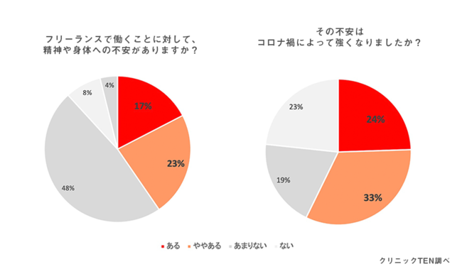 フリーランスとして働くことに対して、「精神や身体の不安がある」と回答したのは全体の5割以上。