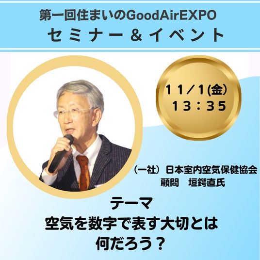 (一社)日本室内空気保健協会(愛知県春日井市大泉寺町121-2 代表理事:加藤美奈子)は11月1日(金)に東京・丸の内で第一回住まいのGoodAirEXPO内で「空気質の数値化」に関するセミナーを実施